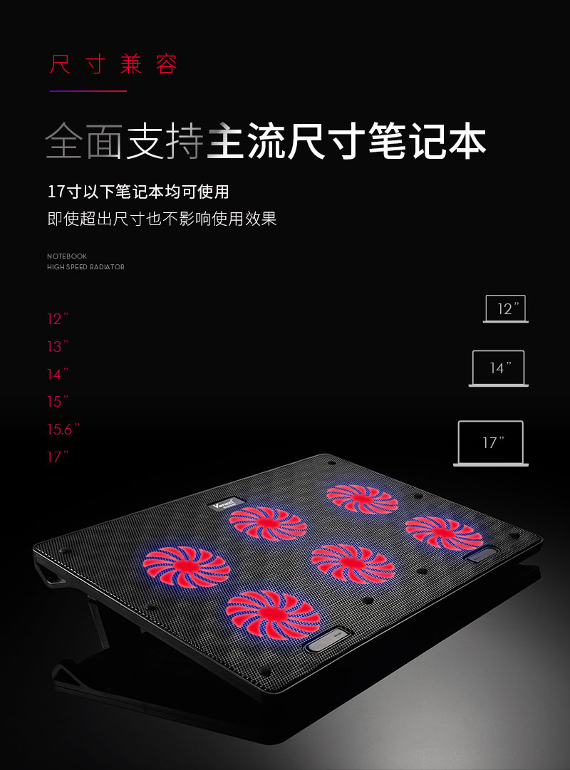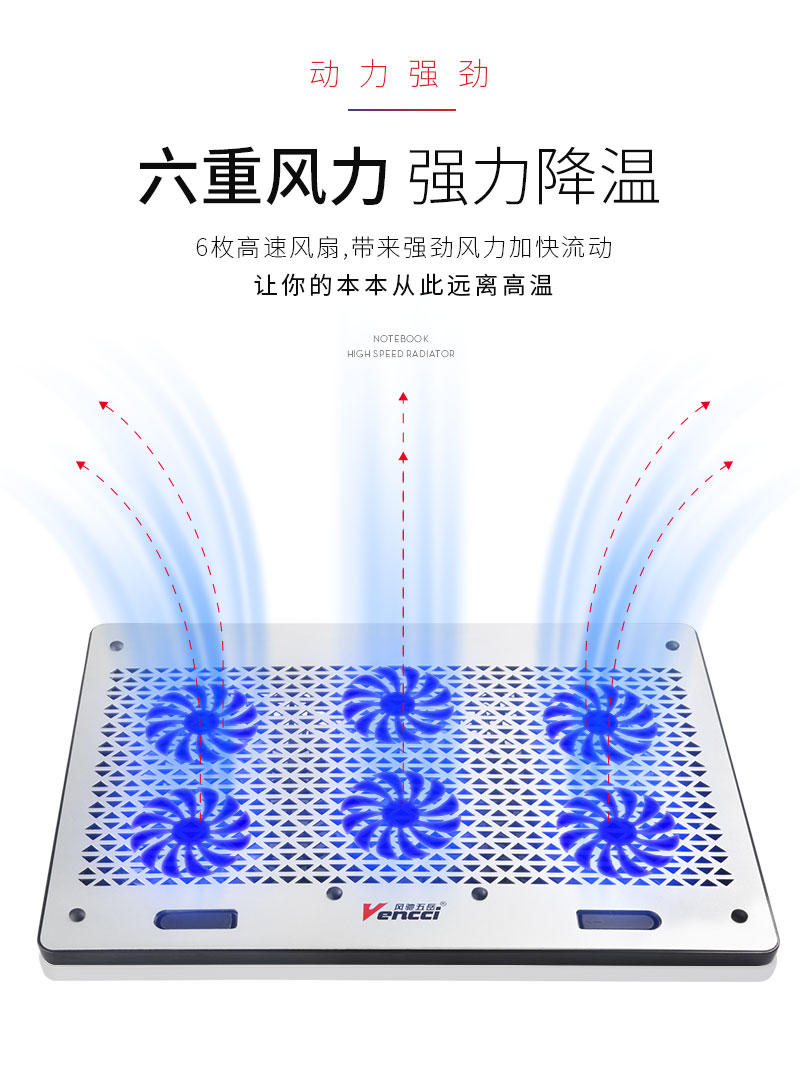 这款散热器主要上天猫,产品特点主要是6个大风扇,风量大,铝合金面板,散热更快,所以在设计中根据产品调性,以深色为主色调,体现产品金属质感和硬朗风格,对产品的功能,特点进行深度挖掘,加上特效演示,来展示产品的设计原理,上线后转化率明显上升。