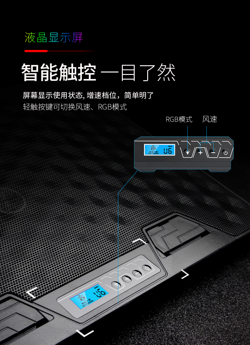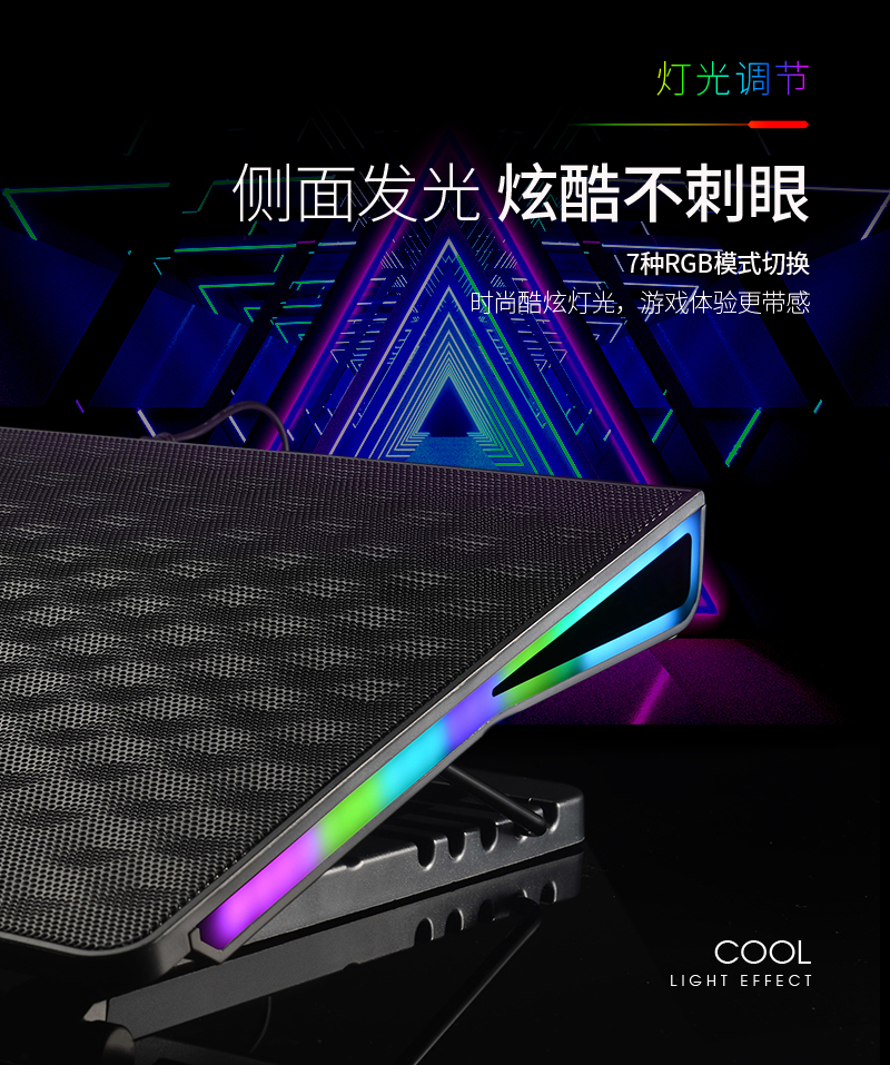 这款散热器主要上猫,产品特点主要是独立大风扇,风量大,RGB七彩炫光,可调可控,所以在设计中根据产品调性,以深色为主色调,对产品的功能,特点进行深度挖掘,加上特效演示,来展示产品的设计原理,上线后转化率明显上升。