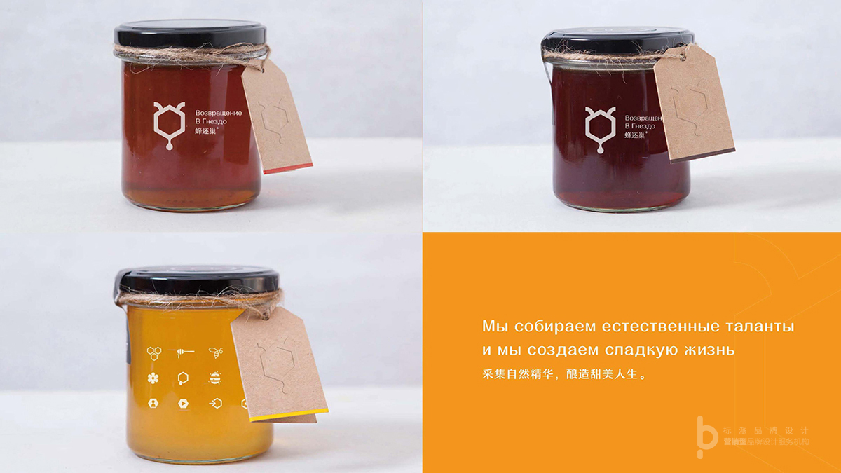 本项目为蜂还巢高端产品系列品牌设计,首先品牌logo从蜂巢,蜜蜂,蜂蜜这三个元素来提练塑造,形成一个独特个性的图腾,简约直观,识别性强。应用物料部份,侧主要为瓶贴,包材,体验终端进行统一视觉打造。